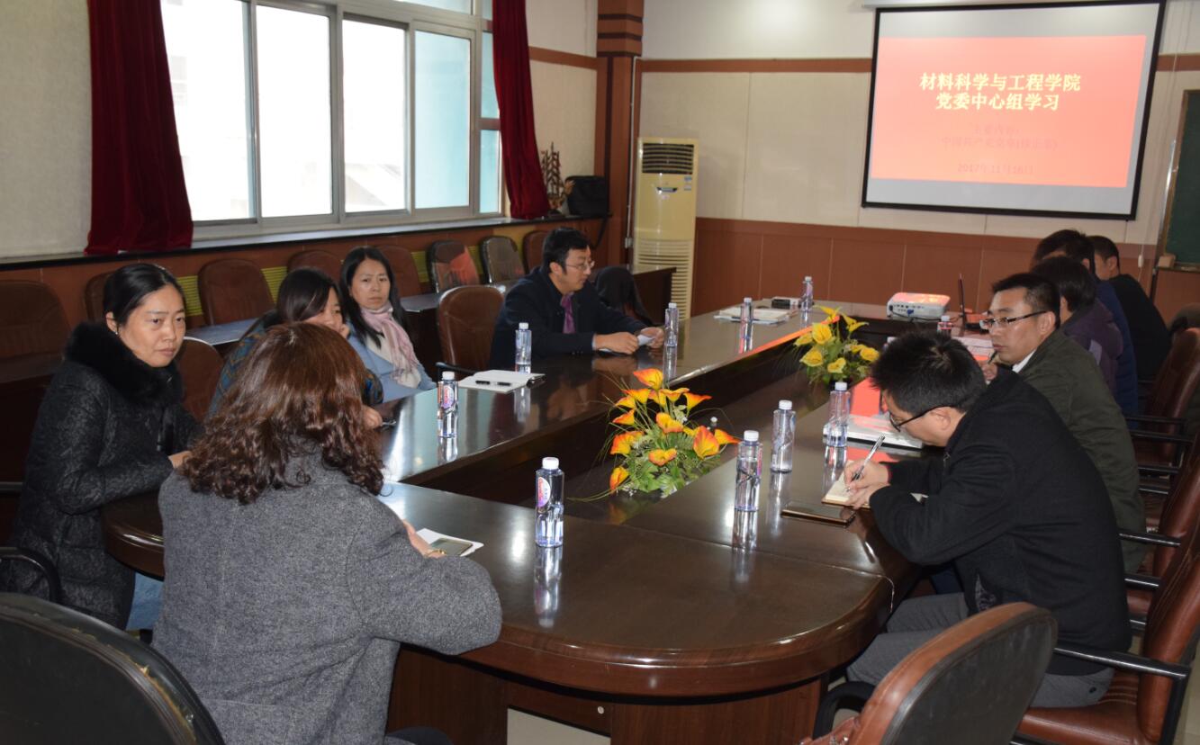 党委在材料A325会议室召开中心组学习扩大会议对中国共产党章程修订案进行了集中学习。本次学习会由党委书记王丽萍主持,党委副书记袁云岗对党章修订案进行了解读。党委中心组成员、教职工党支部书记参加了此次集中学习。