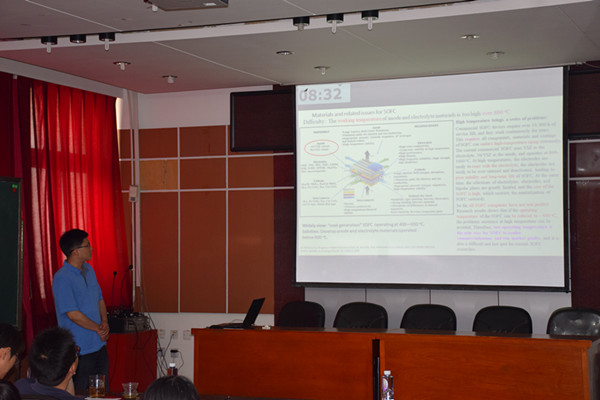 在特邀报告环节,李鹏、董国徽两位老师分别以《Unified factor of dislocation evolution in fatigued fcc crystals》、《MIEC perovskite for Solid Oxide Fuel Cells (SOFC) Anode materials.》为主题,进行了英文专题交流汇报,两位老师的高水平学术报告引起了参会师生们的浓厚兴趣和热切关注,同学们深深学习和感受到老师们缜密的思维和严谨的科研态度。在讨论时间里,大家纷纷就相关问题进行提问,两位老师耐心地进行了详细解答,气氛十分热烈。
