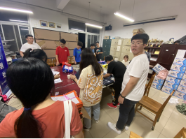 2020级新生辅导员董亮老师和2019级部分志愿者在材料B楼412加班加点为新生精心准备百宝袋,其中包含了入学所需材料、华人直播简介