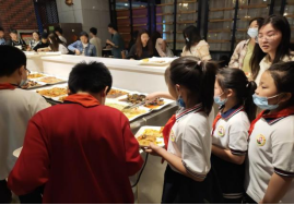 实验室参观体验结束时已近中午,学院特别安排每位毕业生党员带领两名小朋友一起在西校区网红食堂“大榕树”,实地体验大学生活品尝食堂的饭菜佳肴,同时进一步加强相互交流,让大家畅所欲言,可以提出自己对于未来大学生活的想法和疑问,毕业生党员为小朋友耐心解答,鼓励他们好好学习,将来考上自己理想的学校。用餐后,毕业生党员将小朋友们送上返校大巴车,大家挥手告别,期待下次相聚。