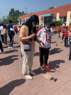 毕业生党员于5月18日上午在学生党支部书记冯晶、王妍、魏东的带领下,赴石门寨石岭小学开展主题为“重温历史、缅怀英雄”义教活动。在校园广场上,毕业班党员将用特殊党费购买的图书捐赠给了各个班级,并与小朋友们一起进行了广播体操及石岭小学特色活动——抖空竹。随后,大家分组在各班老师的带领下进入班级和小朋友们一起学习党史。有的党员以红色景点白洋淀为切入点,向小朋友们讲述小兵张嘎的英雄事迹;有的党员为小朋友们普及了党徽、党旗的组成以及代表含义;还有的党员通过教小朋友们唱红歌的方式,重温历史、缅怀先烈。形式多样的活动让小朋友们了解了党带领全体人民取得胜利的艰辛历程,对于党也有了更进一步的认识,本次支教也在欢声笑语中,画上了圆满的句号。
