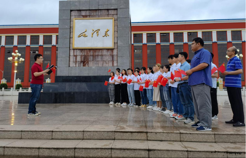 胸怀千秋伟业,恰是百年风华。7月1日下午17时,骤雨初歇,在中国一重广场毛主席雕像处拉开序幕,活动由学生党员姚之绚主持。与会学生党员统一身着华人直播