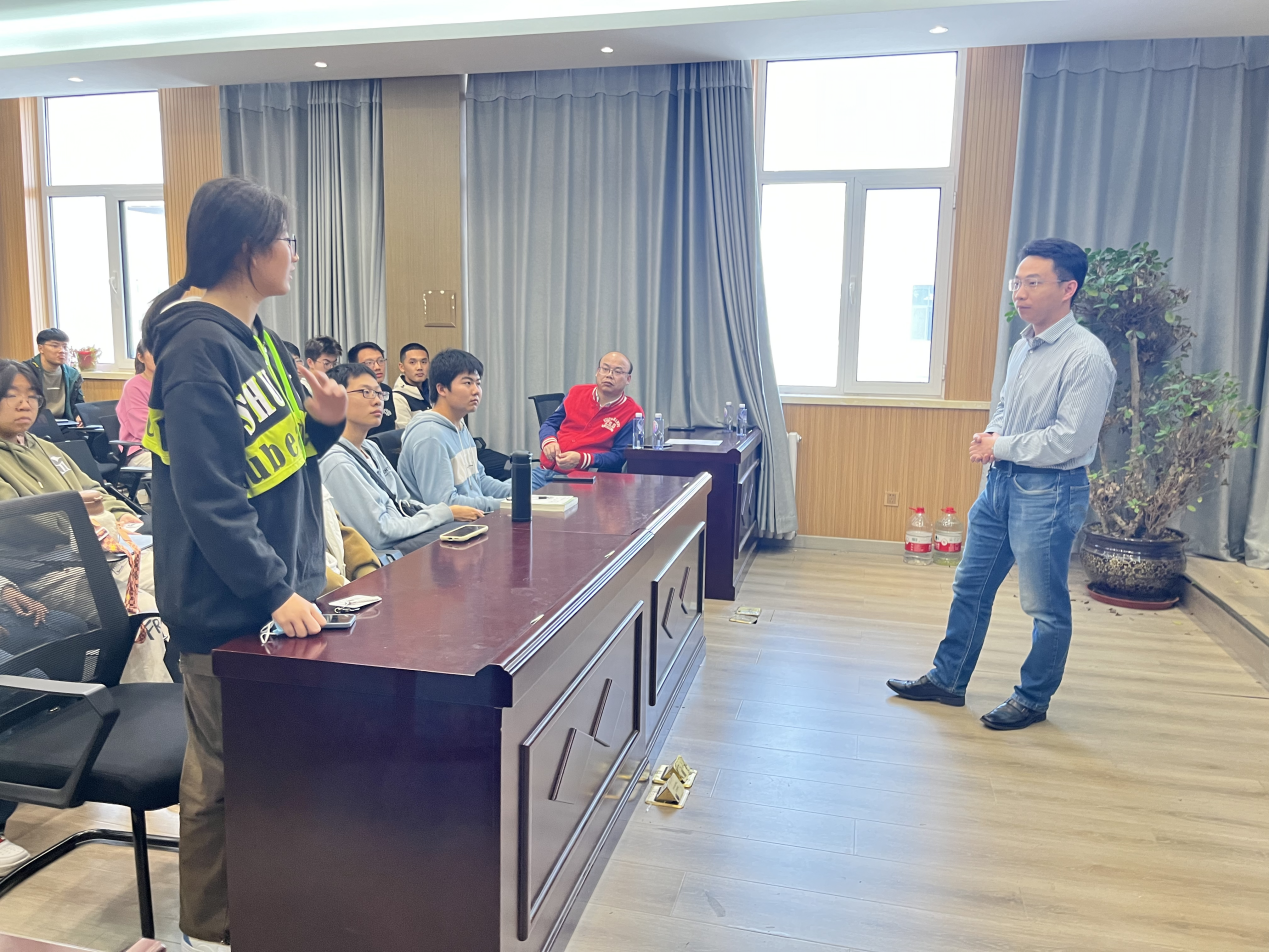 薛天宇教授首先强调“选择比努力更重要”,鼓励大家面对大二年级的专业分流,兼听则明,深入了解专业方向后选择一条适合自己的正确赛道,并为之努力。接着向大家介绍了材料物理专业特色、专业教师情况、科研工作、就业方向,以及现阶段作为研究热点的芯片和能源的应用。高精度芯片的制作是当前面临的难题,而航空所需的太阳能板,所涉及的电池如锂电池,燃料电池,太阳能电池等,又是属于能源领域需探索的。新兴领域研究门槛相对较低,较容易切入,鼓舞同学们敢于在材料学科道路上坚定走下去。向建勇教授向大家介绍未来人类的发展、社会的发展与材料息息相关,材料学科是发展的基础。当前处于瓶颈期的难题大多数都是材料的改良。材料物理是一个交叉性强的专业,内容多、广度深,是有发展前景的朝阳专业,希望同学们树立清晰的目标,对于知识的学习,做到学以致用、理论联系实践,进而掌握知识的本质。最后,两位教授针对同学们的疑惑和问题,进行了深入浅出、细致耐心的解答,同学们获益匪浅,不时爆发阵阵掌声。