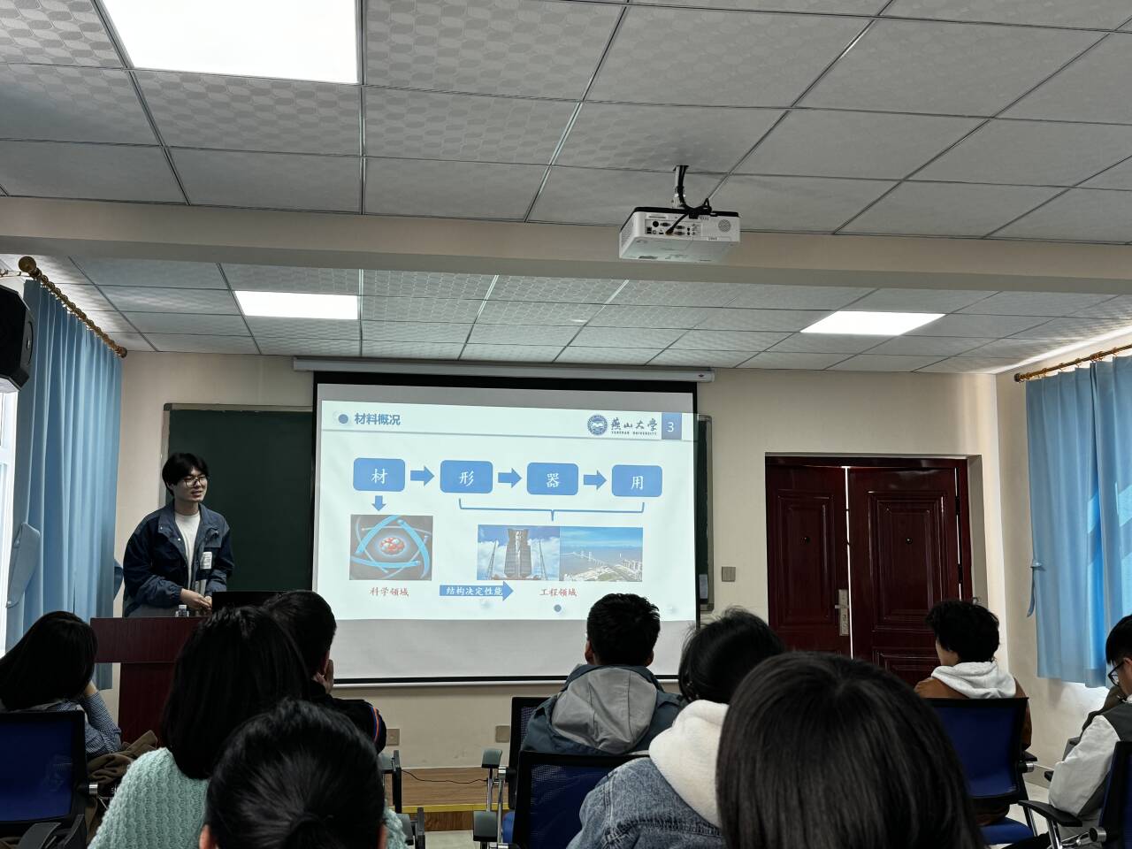 宁榴莲同学从专业介绍、科研项目、学科竞赛、全面发展四个方面结合自身经历讲述对金属材料工程的落地应用与前沿研究的认知,分享开展科研项目与准备学科竞赛的实用方法,建议同学们以专业学习为基础,科研竞赛为延伸,在志愿实践活动中全面发展。她鼓励同学们在大学生活中,要主动争取机会和制造机会,多尝试、多参与、多挑战。