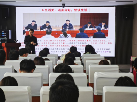新办公楼113会议室以《培育优良家风,端正党风政风》为主题,为学院16名发展对象和42名学生党员讲授专题党课。