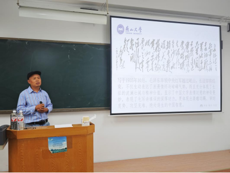 邀请文法学院王永老师在里仁教学楼B207室以《毛泽东诗词的党史文化与中国精神》为主题,为学院16名发展对象和45名学生党员讲授专题党课。