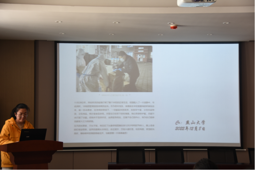 会议伊始,由主持人对本次评选会的流程和标准进行了详细介绍。随后,8名参评同学通过PPT展示分享了自己的思想、学习、工作、生活和所获荣誉情况,体现了材料学子良好的精神风貌和综合素质。3个优秀班级围绕组织建设、学风建设、科创竞赛、志愿服务、班级风采及所获荣誉等向全体评委进行了汇报,精彩的图片、详实的数据不仅体现了班级建设的成果,更是体现了班级的强大凝聚力和班级成员的青春风采。个人与班级的展示得到了在场评委的一致肯定。