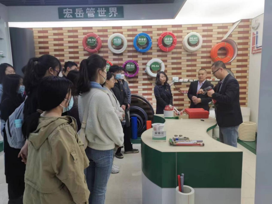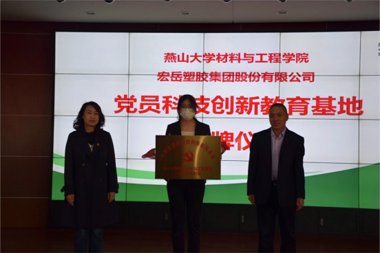 与宏岳塑胶集团股份有限公司共建“大学生党员科技创新教育基地”揭牌仪式在宏岳塑胶集团股份有限公司举行。宏岳集团总工程师祖国富、董事办主任刘燕、工艺工程师孙忠学,学院党委书记李曦达、副书记袁云岗、副处级辅导员王亦晨和来自学院20名研究生党员参加了揭牌仪式。