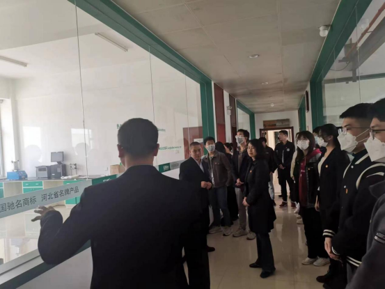 仪式结束后,孙忠学带领学院师生一行人对公司展厅、实验室、工厂车间进行了参观学习,让各位学生党员深切的感受到企业人的实干精神、创新精神、不怕吃苦和不畏艰险的开拓进取精神;充分的认识到科技和人才作为全面建设社会主义现代化国家的基础性、战略性支撑作用;坚定树立潜心研究、攻克技术难关、推动我国科技跨越式发展,让中国制造、中国创造成为国际闪亮的名片的决心。