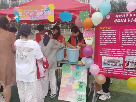 首届志愿服务集市上开展——“漂古色韵展文化,漆水墨签寄深情”活动,引导同学们深入了解和体验非遗漆签的制作技艺,感受传统文化的深厚底蕴,激发青年学子对非遗文化的兴趣和热爱。