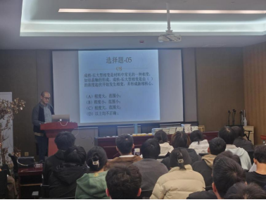 在材料B楼424会议室举办无机非金属材料知识竞赛,比赛邀请赵玉成、于凤荣、邱海龙3位老师担任评委,2022级无机非金属材料工程全体同学参赛。
