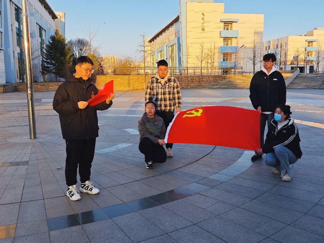 分党校在西校区教学楼广场开展“青春心向党,誓言启新程 ”升旗仪式暨新党员入党宣誓活动。分党校干事王妍和学院新发展的20名学生党员参加了此次活动。