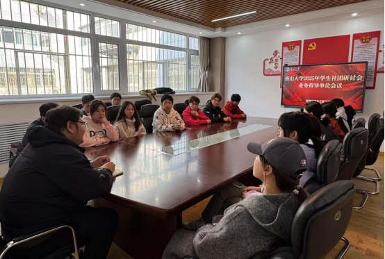 在里仁行政楼119会议室召开学生社团业务指导单位会议。会议由学院团委书记魏东主持,20余名社团代表围绕“加强社团建设、深化育人实效”主题展开研讨。