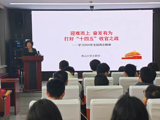 王新华以深厚的理论功底和丰富的教学经验,围绕两会与中国式民生,回顾2024年的工作成就,明确2025年面临的方向和任务,2025年两会的热点、焦点、亮点,四个方面进行深入讲解和阐述。同时,结合创新发展、全方位扩大国内需求、积极扩大有效投资等《2025年政府工作报告》的关键信息为同学们生动解读全国两会精神。王新华强调,我们要保持清醒头脑,增强忧患意识,坚定信心,迎难而上。抓住新一轮科技革命和产业变革的机遇,加快创新驱动发展,推动经济转型升级。要积极应对各种风险挑战,增强发展的稳定性、协调性和可持续性,确保经济社会平稳健康发展。不断提高自身素质和履职能力,进一步坚定推进行业高质量发展的信心和决心。