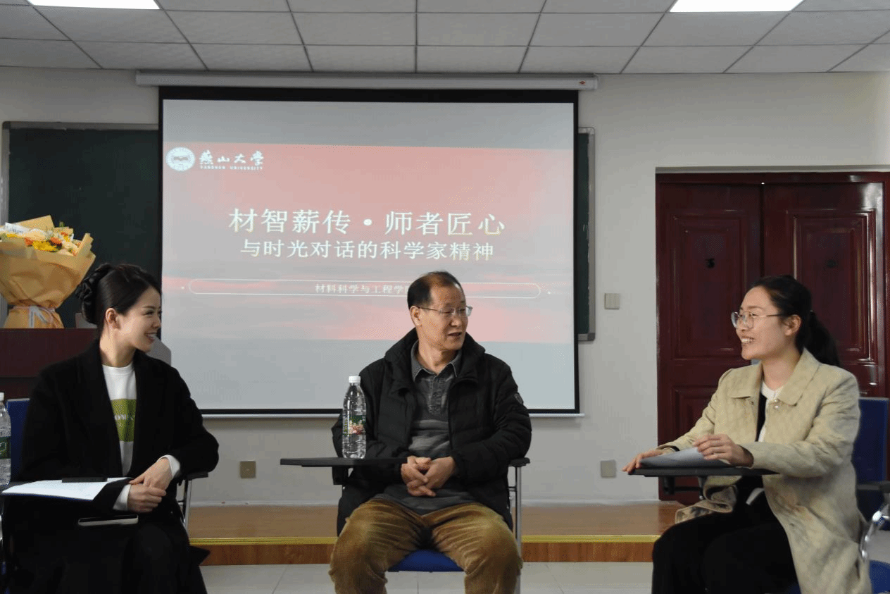 于4月22日下午在“一站式”学生社区工作站开展了一场“材智薪传·师者匠心-与时光对话的科学家精神”的访谈活动。这场跨越代际的学术对话,不仅是对科学家精神的深情礼赞,更是学院为青年学子搭建的精神传承“特快专列”。当时代呼唤科技创新的号角愈发嘹亮,我们追问:该如何让科学家精神突破实验室的边界,在年轻血脉中生根?这场对话,正是学院给出的铿锵答案。