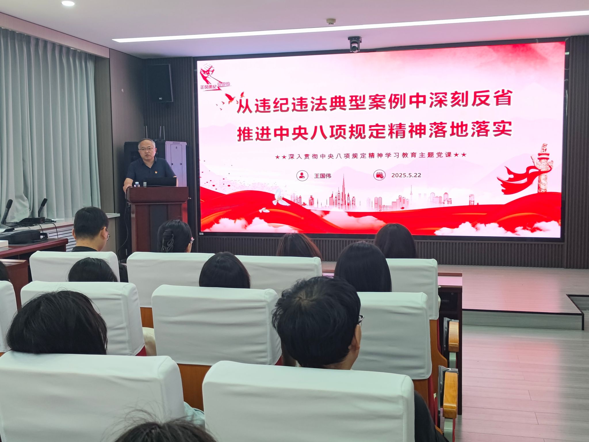 行政楼113会议室以《从违纪违法典型案例中深刻反省,推进中央八项规定精神落地落实》为主题,为学院130名学生党员、入党积极分子讲授专题党课。