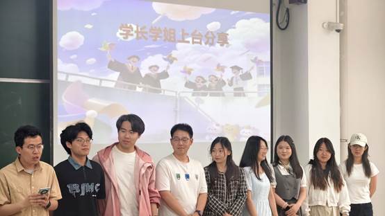 在主持人的邀请下,学长学姐们上台分享工作感悟与毕业寄语。他们回顾了担任朋辈引路人期间的收获与蜕变,既有组织班级活动的心得,也有陪伴学弟学妹成长的感动。“愿你们保持对知识的热爱,在探索中找到人生方向”“珍惜大学时光,勇敢尝试新事物”“青春的我们敢于试错”……一句句真挚的话语,凝结着过来人对后辈的殷切期望,也为在场同学未来的学习生活提供了宝贵经验。