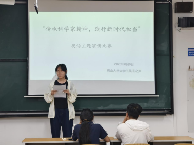 在西校区第三教学楼103举办“传承科学家精神,践行新时代担当”英语主题演讲比赛。