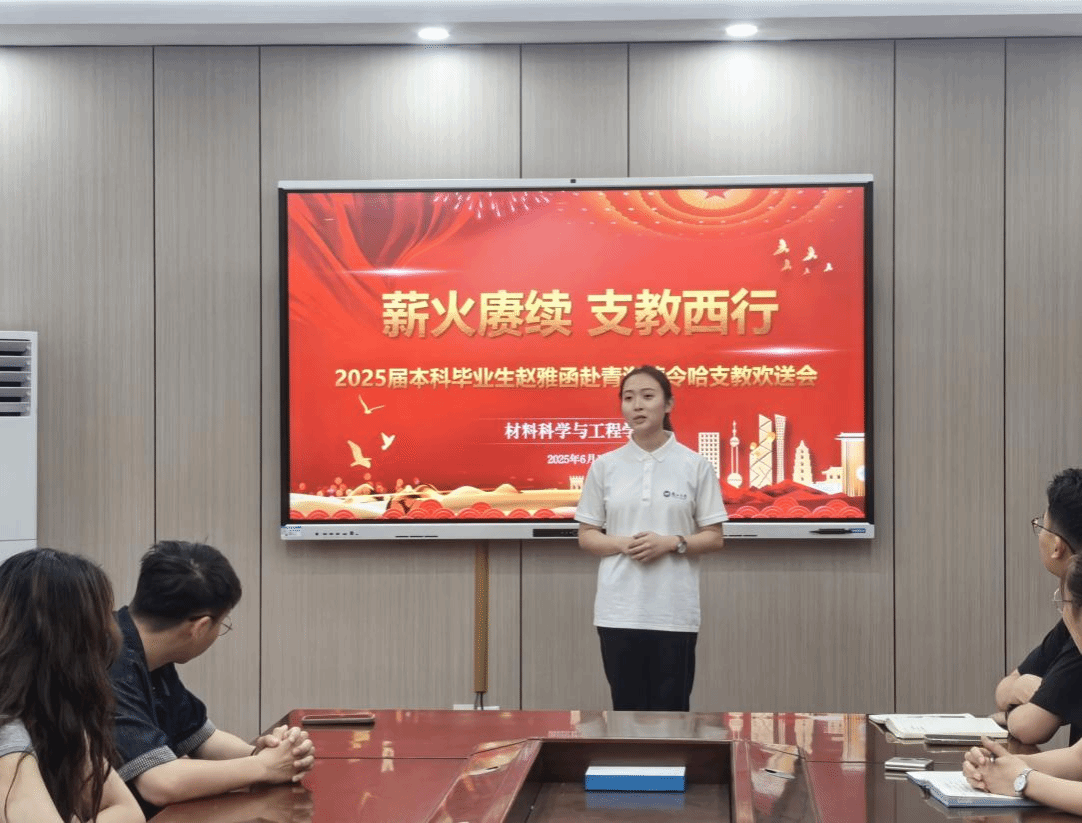 于2025年6月15日上午在材料新楼102会议室,为即将奔赴青海省德令哈市开展为期一年支教服务的2025届本科毕业生赵雅函举办了一场温情满溢的欢送会。学院党委副书记王亦晨、全体辅导员、华人直播
