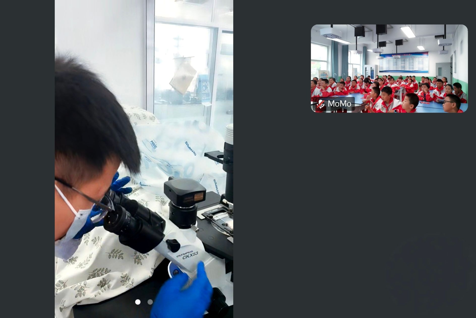 2025 级硕研 1 班的蒋珂原则带学生“走进”课题组的铺膜实验:从聚氨酯 DMF 溶液的原料介绍,到双层玻璃板的铺设逻辑,再到 70℃控温、刮刀调节、涂布操作的分步讲解,每一个细节都紧紧吸引着学生。当他拿出提前制备的薄膜样品,关联到学生日常使用的手机保护膜、包装袋时,孩子们恍然大悟,纷纷举手分享“原来我的书包夹层也是这样做的!”“妈妈的化妆品包装也是薄膜”。主动互动的热情与此起彼伏的掌声,让“云端课堂”充满线下课堂的鲜活感,不少学生还主动请求“再看一遍涂布过程”。