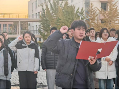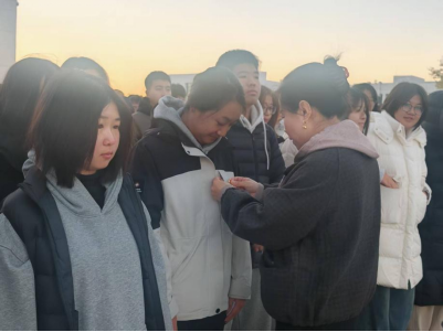 庄严肃穆的升国旗仪式结束后,团委组织部主席胥梦缘宣读了新团员名单,并对他们送上热烈祝贺,提醒新团员们用行动践行入团誓词,发扬先锋模范精神。随后,团委书记魏东老师和2025级本科生辅导员冯晶老师为新团员佩戴团徽,嘱托新团员们牢记闪亮的团徽别在胸前,不仅是一份荣誉,更是一份责任与使命。