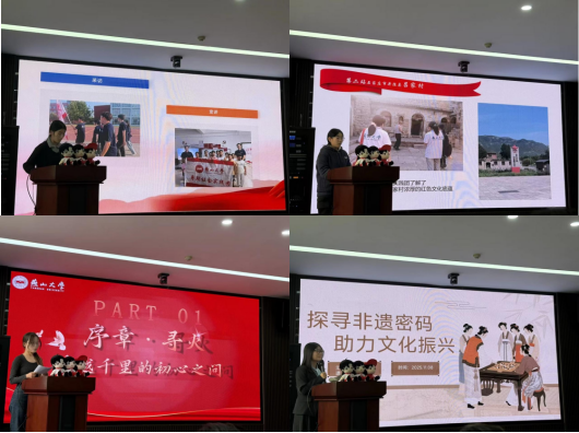 评选现场,八支团队主讲人依次登上舞台,开启了一场关于实践与成长的精彩叙事。他们将课堂延伸至邢窑的窑火旁,感受千年瓷韵的匠心传承;驻足于赵县的漆扇前,领略传统工艺的独特魅力;踏入花厂峪的抗战旧址,铭记那段波澜壮阔的历史;穿梭在燕赵大地的瓜田间,见证乡村振兴的蓬勃生机。从非遗传承的匠心现场,到红色基因的宣讲课堂;从乡村振兴的田间地头,到科学家精神的接力讲台,他们的实践足迹跨越了多个领域。在展示过程中,团队负责人从实践目标、过程实施、成果收获等多个维度,全方位、深层次地呈现了丰富的实践历程。每一份实践报告,都是汗水与思考的结晶,凝聚着团队成员的智慧与心血;每一段服务经历,都是成长与蜕变的见证,记录着他们在实践中不断突破自我的足迹。青年学子们以青春之我、奋斗之我,在实践中践行初心使命,在奉献中诠释责任担当,展现了材料学子深厚的社会责任感和卓越的创新实践能力。