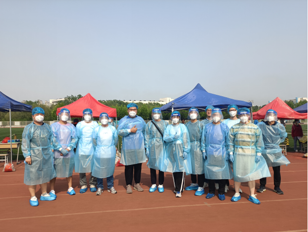 我院李英梅、付瑞东、李艺君、顾江龙、刘迪、邱海龙、许世清、薛天宇、仝柯、王锁涛、王鹏、于鹏飞、魏东13位教师积极响应学校号召,主动报名参加了6月20日学校的全员核酸检测工作,在战“疫”一线当先锋、作表率,用实际行动践行人民教师的初心使命。为保障各项工作有序、高效开展,教师志愿者们提前来到核酸检测点,根据调度安排,各司其职,分工井然有序,大家分别投入到扫码登记、流程引导、秩序维护等各项保障工作中,为疫情防控贡献力量。