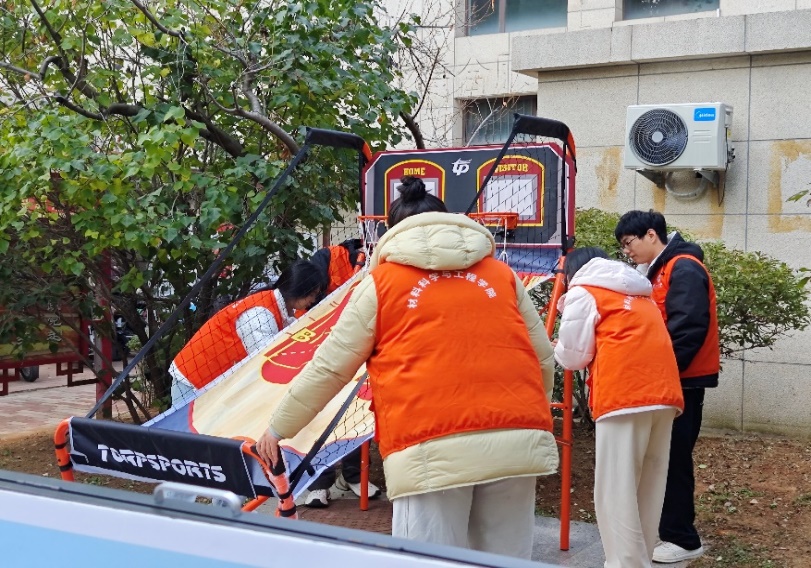 同学们布置场地摆放物资